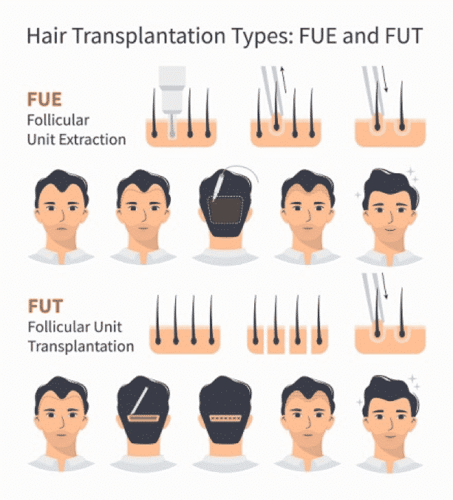 Hair Transplant Surgery is performed into two techniques, among several others. They are – Follicular Unit Excision (FUE) and the Follicular Unit Transplantation (FUT, also known as the Linear Excision Method).